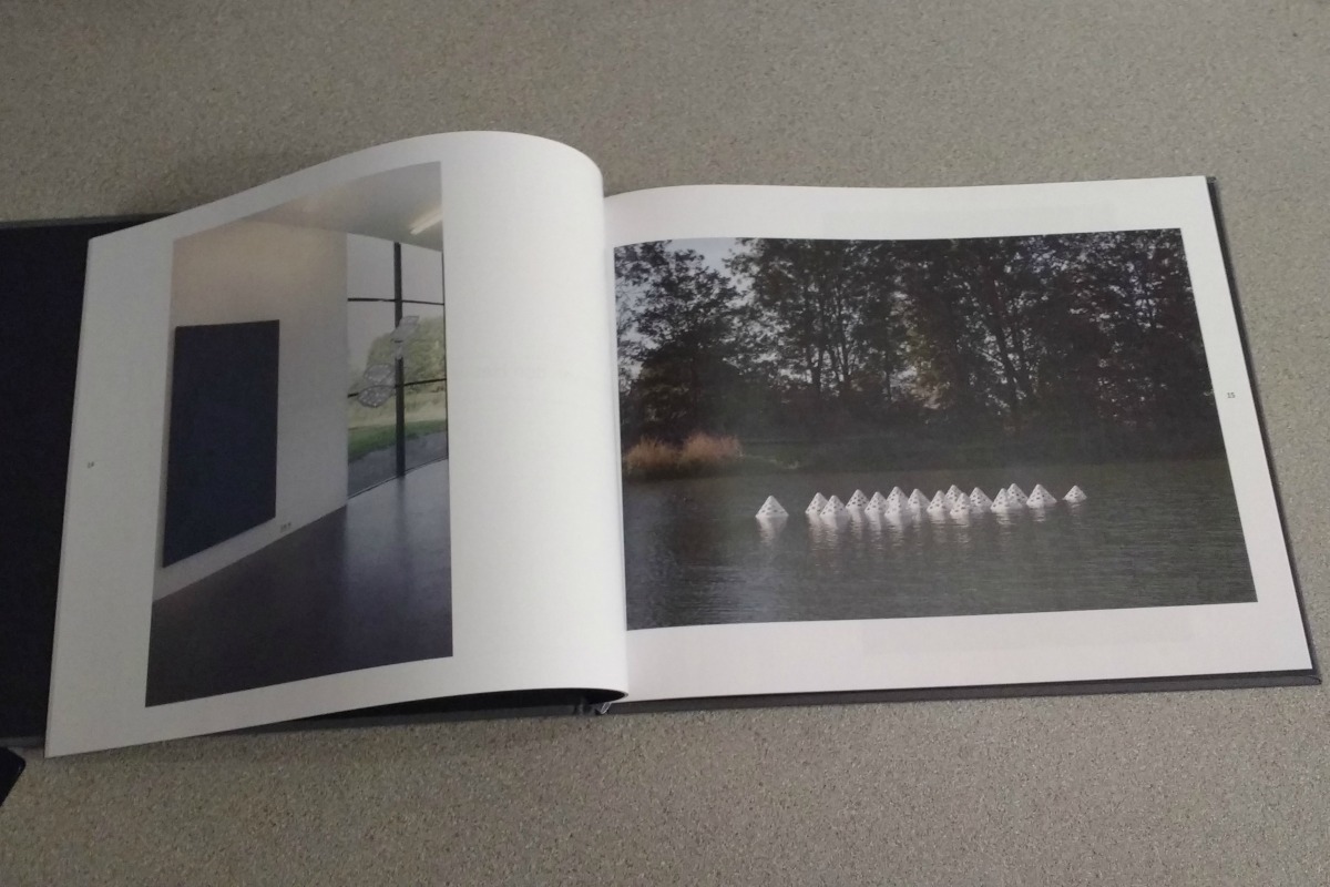 Aan de wand werk uit de serie "stoppels en gaten". In de lucht "wolk". De keramiek is van Eefje van den Braak. foto Luuk Huiskes