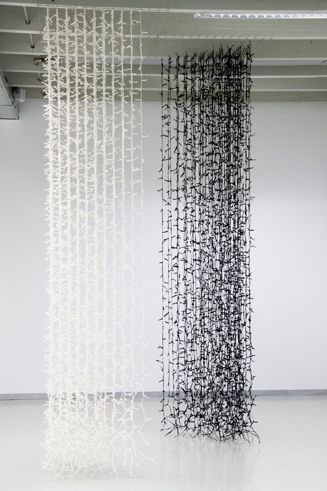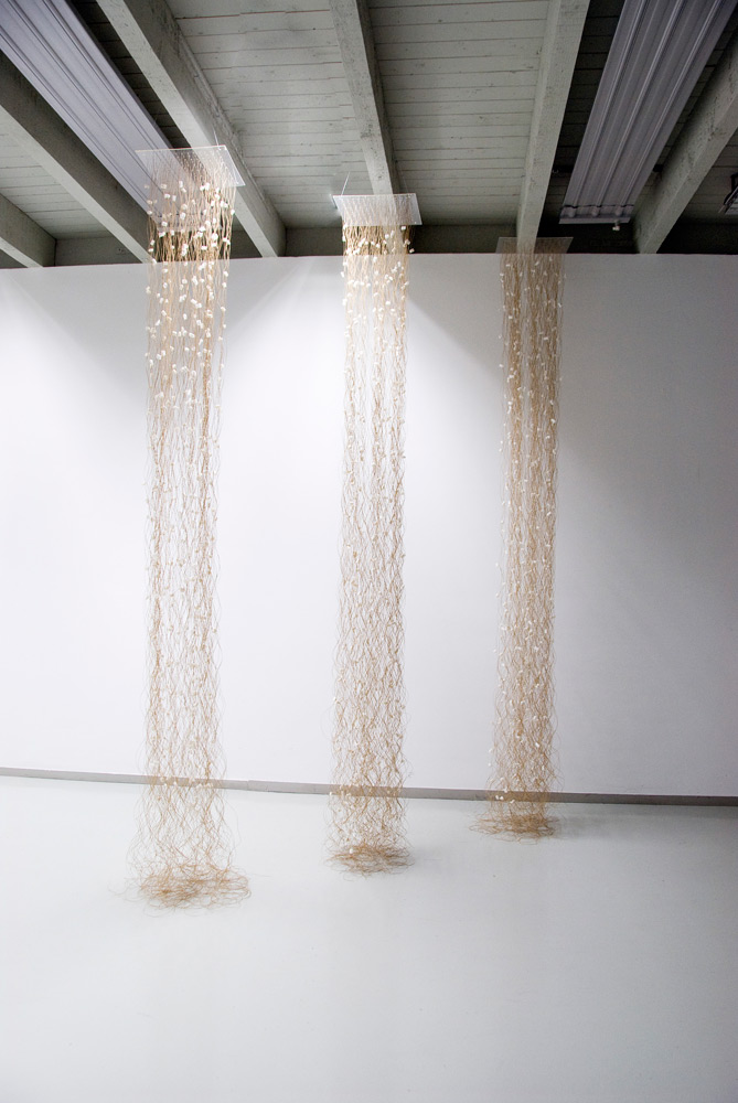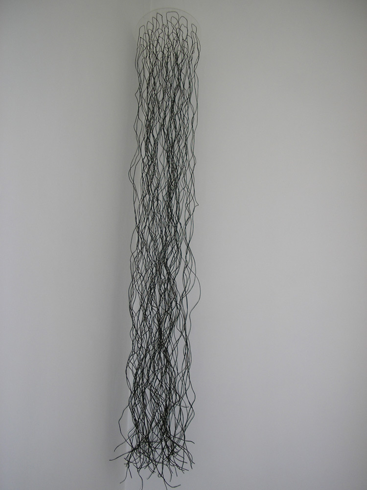 2007, papiergaren aan acryl plaat, circa 150x30x30